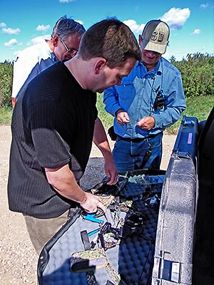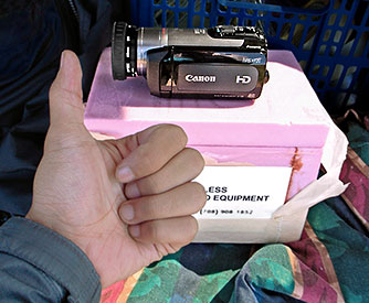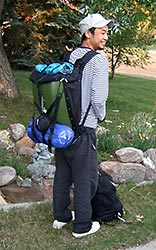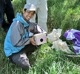 Tomoya was all smiles and happy to have his camera back, although he still didn't know its condition other than it was on as the lens shutter was still open. August 30, 2009 - Tomoya returned home today with his camcorder & video, digital camera, over 1000 still images & countless memories of his trip to Canada. Tomoya is a student in his early 20's and this was his first trip very far from home. He stayed with my wife & I during his visit and, considering he only knew Japanese 2 months earlier, his English was excellent. Tomoya participated in our BEAR-3 launch as well several days before his BEAR-4 camera flight. This may have been Tomoya's first big trip, but he certainly knew how to travel light and had everything packed in his carry-on baggage, which even included the remains of his burst balloon when he left along with 2 cameras, a lap-top and extra external hard drive.
