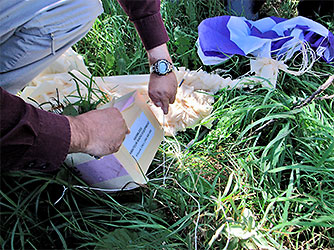 ![]() We like to stay under or slightly ahead of the balloon and often stop to watch it, contemplate which direction it will head next or land and visit while we wait for the balloon to catch up. Below - Waiting for the balloon to burst at a location we feel will be very close to where the balloon will land. |