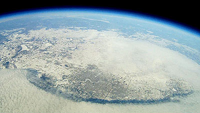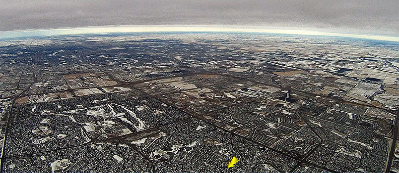 BEAR-9 was the first of a number of flights for Kevin, an artist/photographer from Vancouver, that needed a large format 4x5 inch film image for a project, like the SABLE-3 digital image from 117,597 ft. |