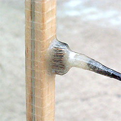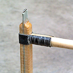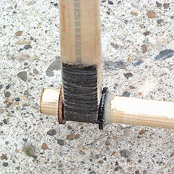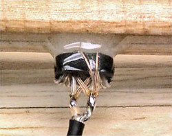 To further protect the balun, wiring and provide better strain relief for the feed line, several layers of fibreglass cloth and epoxy were then applied over the embedded balun and wiring. |