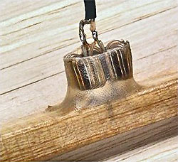 A 4:1 balun from a TV mini-match worked perfect to match the 50 ohm coax feed line to the 200 ohm antenna. 5 minute epoxy glue was used to attach the balun and then more was applied, in workable amounts, until the balun and all of the fragile wiring was completely embedded in epoxy. |