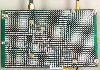 APRS Tracker Bottom View This shows my method of making one-of-a-kind printed circuit boards. Parts are installed as physically required and to minimize jumpers. Connections are then made by bridging pads together with solder. |