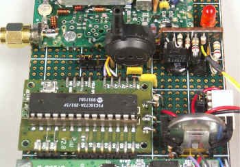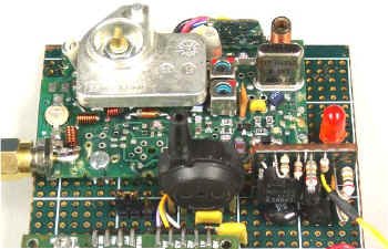 Closer View of the transmitter area. Circuit board to the right of the pressure transducer is Left of the pressure transducer is a jumper to The Orange LED indicates when the transmitter is keyed. |