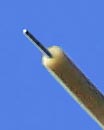 (left) Seeing the payload & antenna instantly answered why data transmissions were not received as 95% of the antenna element was missing. Only the small stub of brass tubing used to splice on the longer missing element remained which had snapped from stress as the antenna was dragged across the fields. |