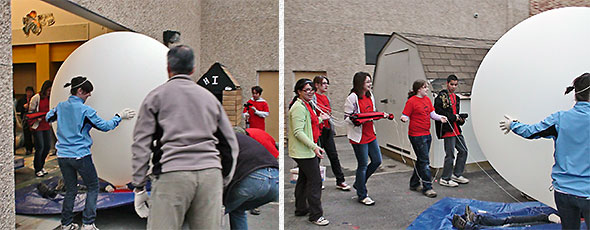 ![]() The students walk the balloon assembly to a clear area and Tony releases it on it's journey. |