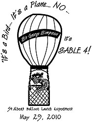SABLE-4 St. Albert Balloon Launch Experiments Photo from SABLE-4 close to maximum altitude of 110,219 feet. Tony's choice to use SABLE for his balloon launch experiments worked well as it's still applicable after moving from Southern Alberta to teach at Sir George Simpson Jr. High in St. Albert where SABLE-4 was designed as a school project for a group of grade 7 & 8 students.