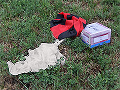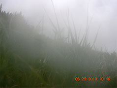 Luckily, 1 image just before the balloon burst showed some cloud detail making it much better then the rest. During decent the balloon remnants, parachute and payload all became very tangled and few images showed much with all the spinning, tumbling and clouds. The high descent rate also only allowed time for 1 blurry image after emerging below the clouds prior to landing. It took a while to recover the payload this time which ended up being good as it took fog on the camera lens 62 min's to dissipate while it lay in the field. We arrived on the scene 36 min's later and one of the last images shows Tony placing the payload in his vehicle after a short 5 minute walk back from the field. |