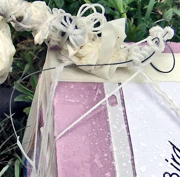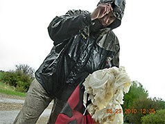 When the payload landed we were in the area, but like BEAR-6 we were unable to receive the tracker signal needed to determine its exact location and organized a grid search listening for the signal. The last received position report was from ≈ 8000 ft. and we knew when to listen for the tracker signal, but as we started the search one of our vehicle trackers was beaconing about the same time which masked the signal and we drove right past where we finally received a position report and found the payload about 80 minutes later. Examining the antenna (right) revealed why we had trouble receiving the tracker during its descent and after it landed. The active antenna element that should have been ≈ 19.6" long was tied up in a knot along with the parachute and other cords leaving it only ≈ 8" long. More info about this antenna and improvements can be found on the 1/2 wave center-fed antenna page. |