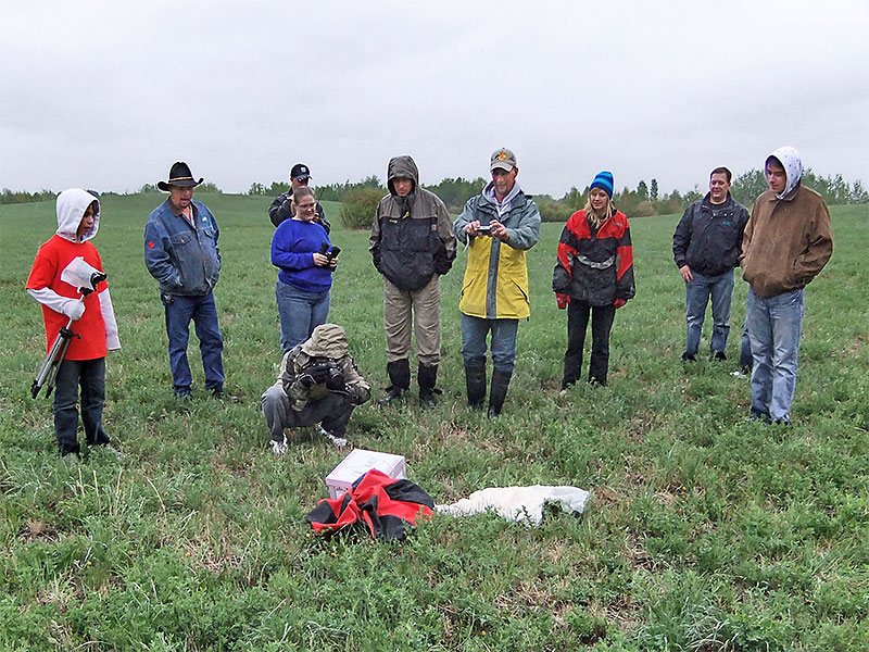 The same camera as used for SABLE-3 was used for this flight and the tracker was a prototype of a new one being developed by RPC Electronics, called RTrak-HAB which was flight tested for the first time on this flight. See my RTrak-HAB Page for more information about this tracker. This flight provided some interesting data near its maximum altitude that we have yet to fully understand. The rate of rise was about 700 ft/min until ≈ 100,000 ft. and then slowly decreased until about 300 ft/min at 109,114 ft. or ≈ 50 ft every 10 sec's. Around 109,356 ft. this slowed to ≈ 10 ft every 10 sec's and we wondered if we may have a floater and never get our equipment back, but it then rose back up to ≈ 50 ft every 10 sec's by 109,612 ft. At 110,114 ft. it started to decline again and at the maximum altitude of 110,219 ft. it started dropping again, up to 23 ft. every 10 sec's at 110,124 ft., until at 110,075 ft. it started rising again up to 33 ft. every 10 sec's at 110,167 ft. when the balloon burst. The balloon had slowly descended almost 150 ft. and we thought it may have developed a slow leak until it began rising again. We figured there was too little atmosphere above 100,000 ft. to affect a balloon in this manner, but we were obviously wrong unless someone has a better explanation. Regardless, we were very happy to see the balloon finally burst and our equipment return to us. |