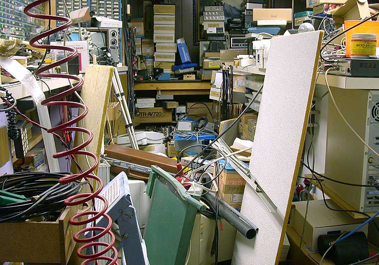 During construction the poor old workshop suffered due to the need for working space. It didn't matter much that work benches were covered with "stuff" which made them unusable, because no one could get to them anyway because of even more "stuff" on the floor! |