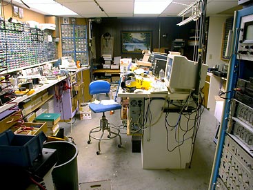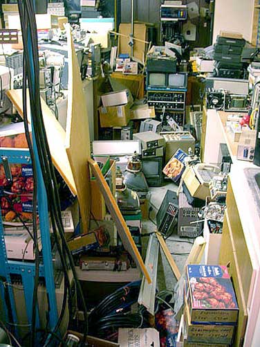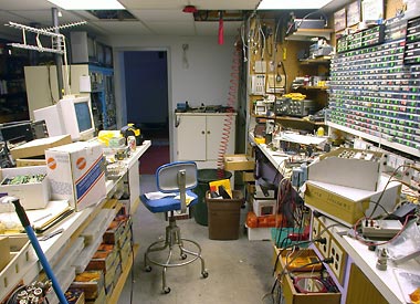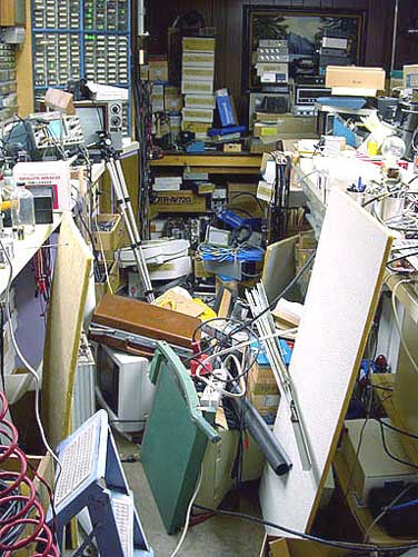| "Stuff" covered the floor in front, and behind, the center island work bench.. | |