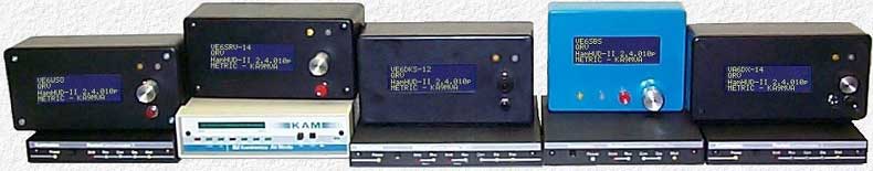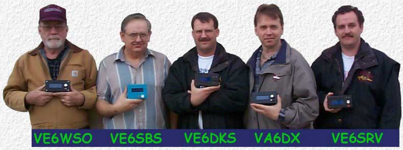 In July 2000, James, VE6SRV, asked if I would be interested in building some HamHUD units. I had too many projects already on the go, but the idea of intelligent beaconing was just too good not to try. So I struck a deal with James. He could use my electronics workshop and machine tools and I would help him build several units, but it would be up to him to figure out how to configure and use them. We decided to build 4 units; one for each of us, one for Don, VE6DKS, and one spare to experiment that we soon promised to Barry, VA6DX. James ordered a LCD display and 4 other components for each unit and I ordered the circuit boards and supplied everything else from my large inventory of new and salvaged components. Then Gene, VE6WSO, showed up with a circuit board so we ended up building 5 HamHUDs in total. Once we started using our HamHUDs, we found it necessary to replace the original reflective LCD displays with backlit ones. These are the 5 HamHUD units built. Mine is the Little Blue HamHUD. |