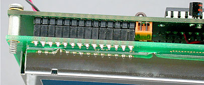 This low height header and connector strip permits the LCD and HamHud circuit boards to be spaced only 9/32" apart.