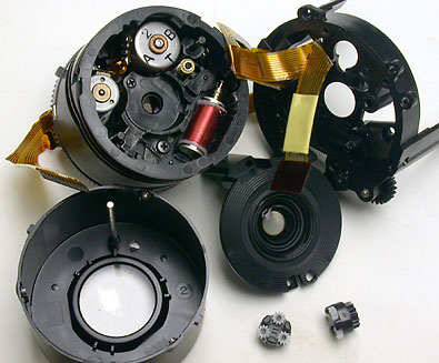 Removing the lens revealed the CCD sensor and now only the lens remained to be disassembled. I have tried to disassemble and repair a few lenses in the past, but something always seems to prevent successful reassembly, like being small enough to fit inside to attach that last clip or spring. I had nothing to loose, as it didn't work the way it was, so proceeded with the fun and disassembled the lens. |