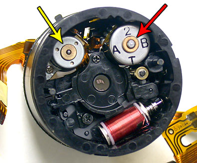 ![]() Yellow arrow points to the tiny 3/8" dia. motor. Red arrow points to one of the two solenoids. |