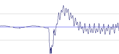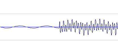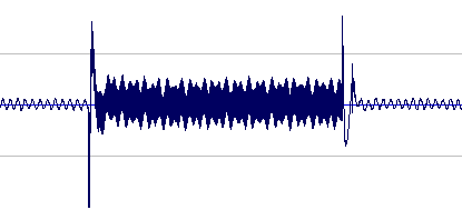 However this recording of a DTMF tone received from a HTX-404 radio is very different and shows that there is an extreme modulation swing at the start and end of each DTMF tone. |