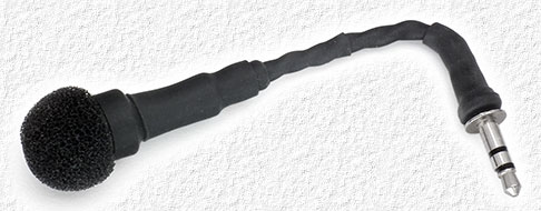 Above - The first plug-in mic made using a mic element identical to the one installed in the first camera with a windscreen from a lapel mic. to see how much difference a small windscreen would make.