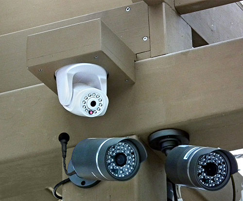 Left - The white camera is an indoor Cybernova CN-WIP604MW PT camera that's been used outside and starting to have problems now after surviving several winters and temperatures as low as −40°C.