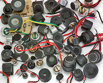 Left - Some of the electret mic's from my collection of mic's salvaged from various things being discarded.