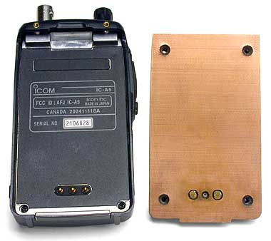 With the radio's being powered by the PPC battery they didn't require one of their own plus making a mounting plate that attached to the radio in the same manner as its battery did took care of how to mount the radio in the enclosure with everything else. This is the mounting plate made from .062" thick PC board material for the Icom radio. |