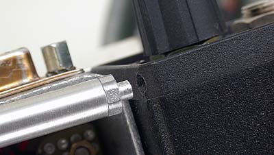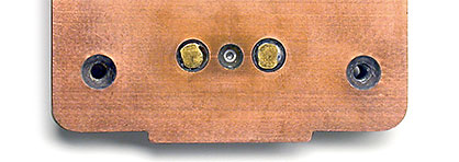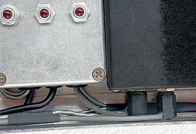 This photo shows how the ends of the 1/4" dia. rods are kept in place at the RAD enclosure corners by reducing the ends of the rods to 1/8" dia. and inserting them into 1/8" holes drilled in the enclosure corners. | |