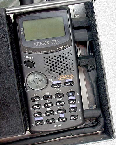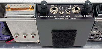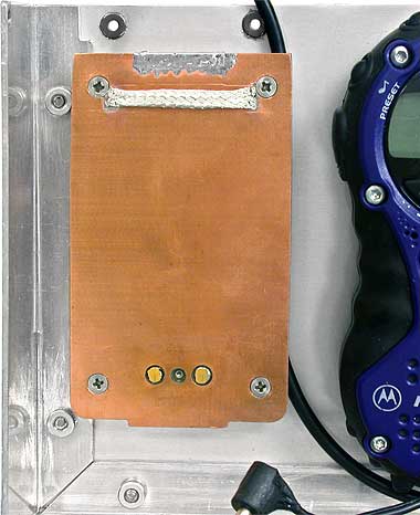 Velcro fabric was applied to the side of the RAD unit and main aluminum enclosure to provide protection for the Kenwood radio & it's connectors. The RAD unit was then positioned for a snug fit to ensure that the radio plugs are kept firmly in place by the pressure the Velcro provides. |